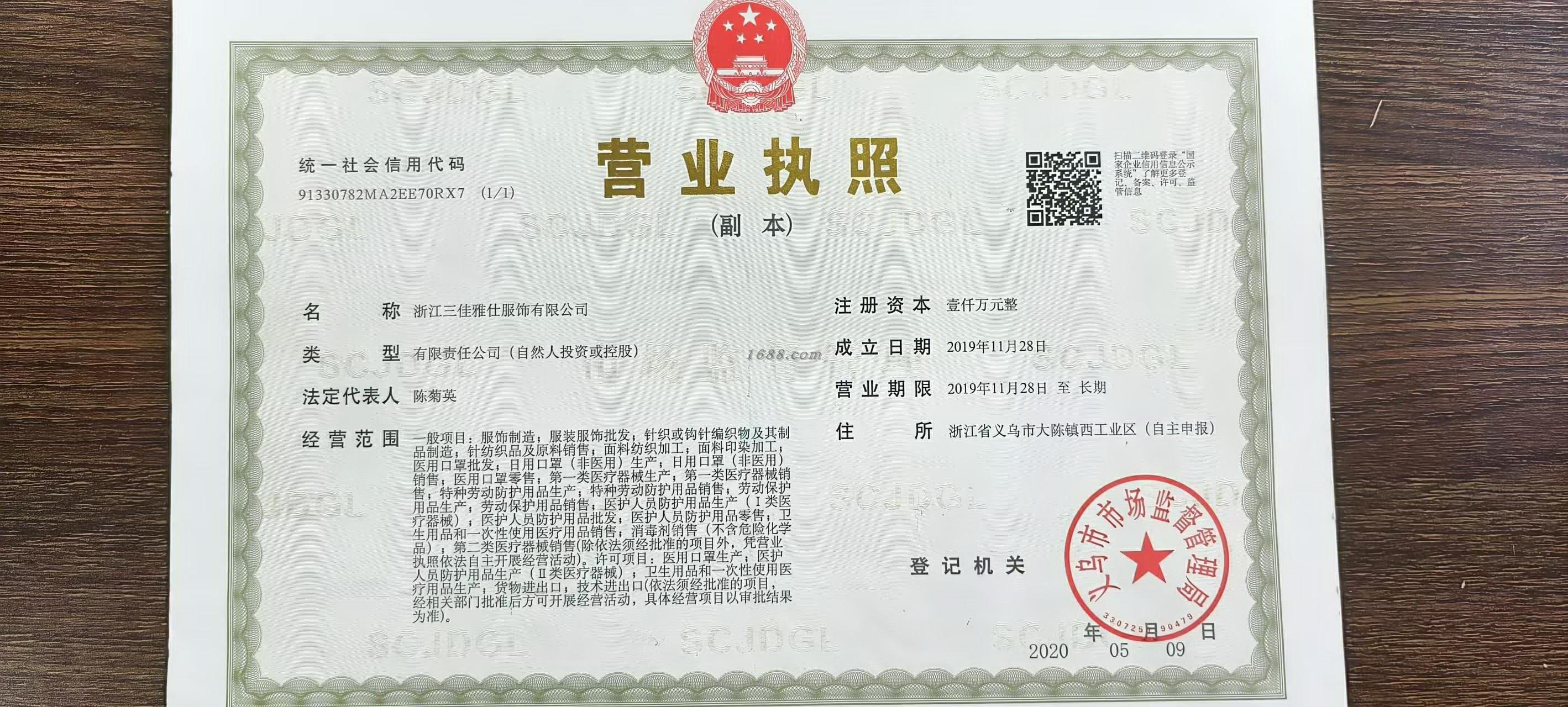 一般项目:服饰制造;服装服饰批发;针织或钩针编织物及其制品制造;针纺织品及原料销售;面料纺织加工;面料印染加工;医用口罩批发;日用口罩(非医用)生产;日用口罩(非医用)销售;医用口罩零售;第一类医疗器械生产;第一类医疗器械销售;特种劳动防护用品生产;特种劳动防护用品销售;劳动保护用品生产;劳动保护用品销售;医护人员防护用品生产(Ⅰ类医疗器械);医护人员防护用品批发;医护人员防护用品零售;卫生用品和一次性使用医疗用品销售;消毒剂销售(不含危险化学品);第二类医疗器械销售(除依法须经批准的项目外,凭营业执照依法自主开展经营活动)。许可项目:医用口罩生产;医护人员防护用品生产(Ⅱ类医疗器械);卫生用品和一次性使用医疗用品生产;货物进出口;技术进出口(依法须经批准的项目,经相关部门批准后方可开展经营活动,具体经营项目以审批结果为准)。