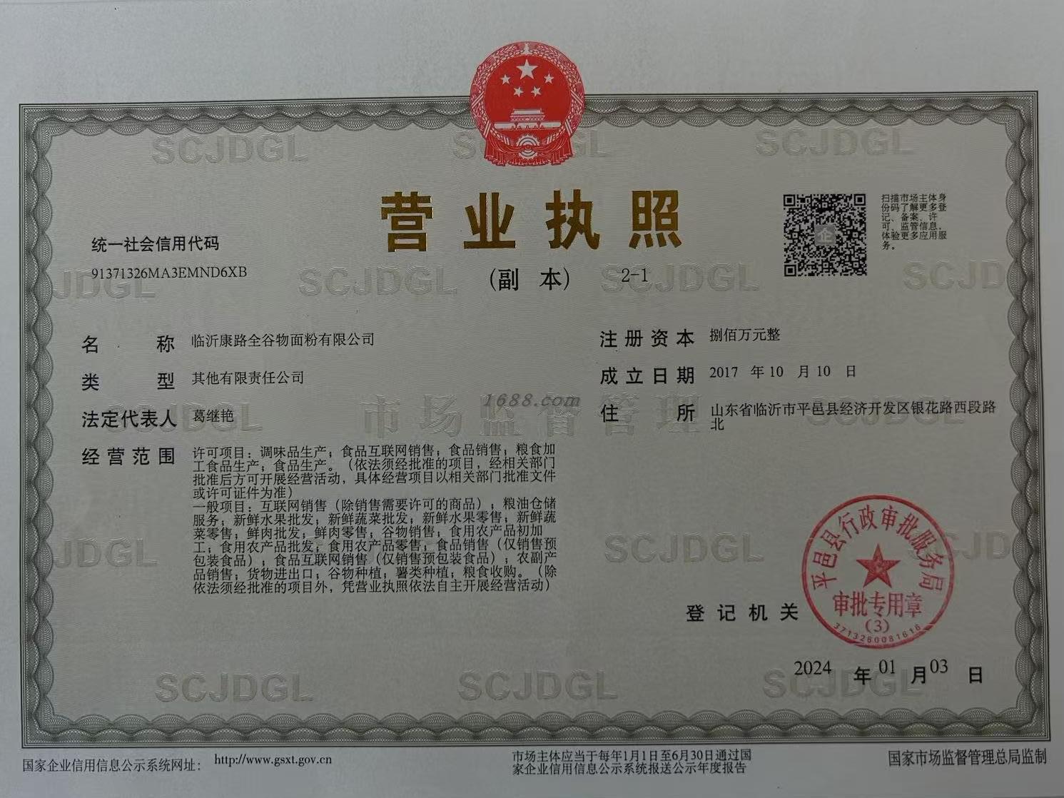 许可项目:调味品生产;食品互联网销售;食品销售;粮食加工食品生产;食品生产。(依法须经批准的项目,经相关部门批准后方可开展经营活动,具体经营项目以相关部门批准文件或许可证件为准)一般项目:互联网销售(除销售需要许可的商品);粮油仓储服务;新鲜水果批发;新鲜蔬菜批发;新鲜水果零售;新鲜蔬菜零售;鲜肉批发;鲜肉零售;谷物销售;食用农产品初加工;食用农产品批发;食用农产品零售;食品销售(仅销售预包装食品);食品互联网销售(仅销售预包装食品);农副产品销售;货物进出口;谷物种植;薯类种植;粮食收购。(除依法须经批准的项目外,凭营业执照依法自主开展经营活动)