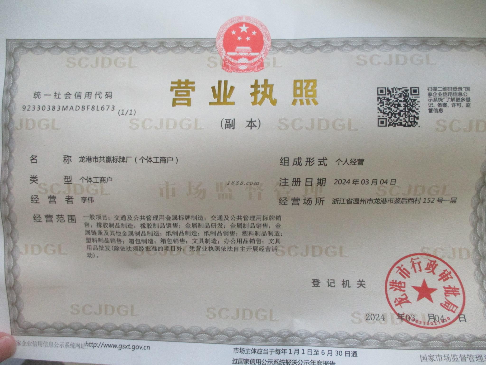 龙港市共赢标牌厂(个体工商户)