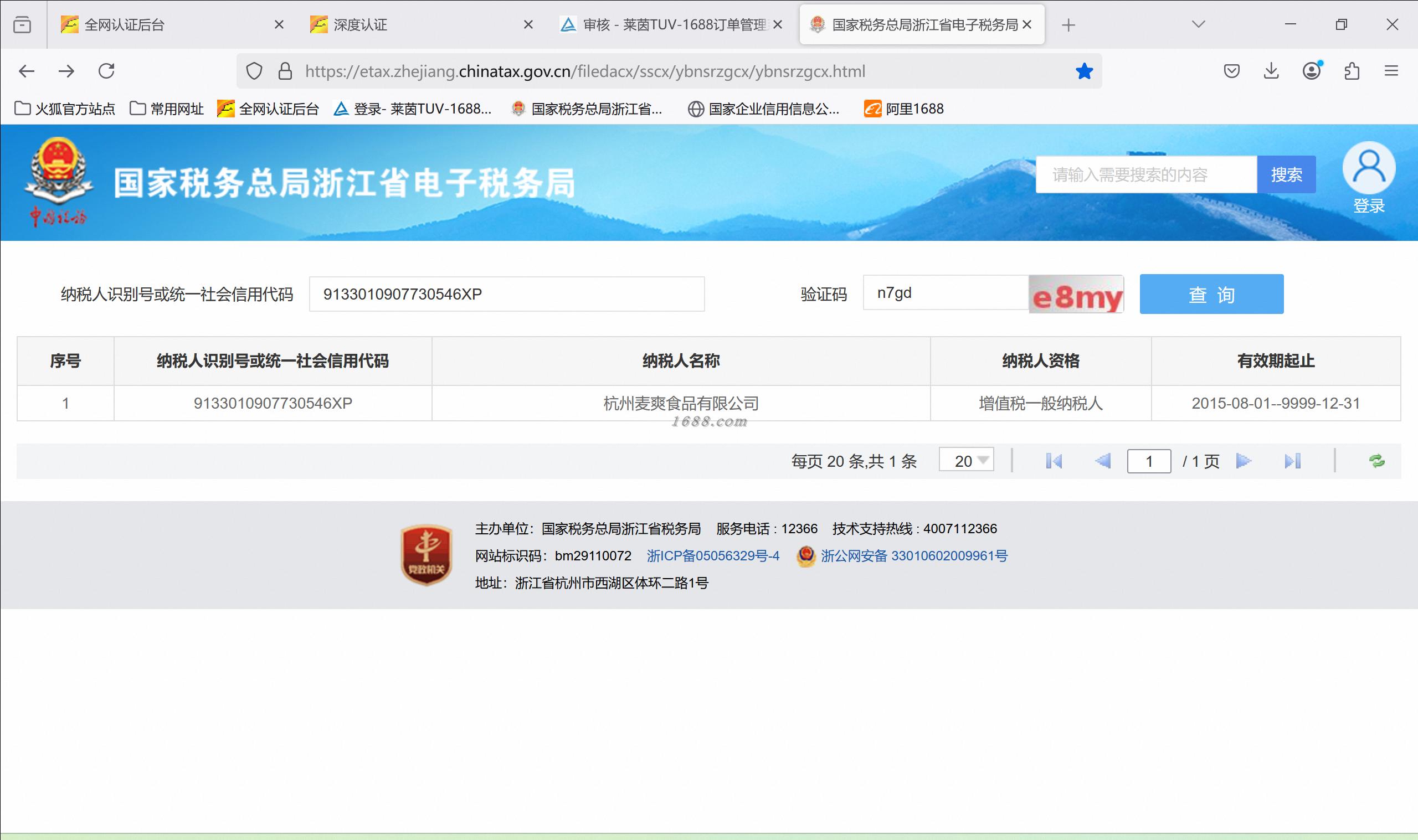 税务登记证信息